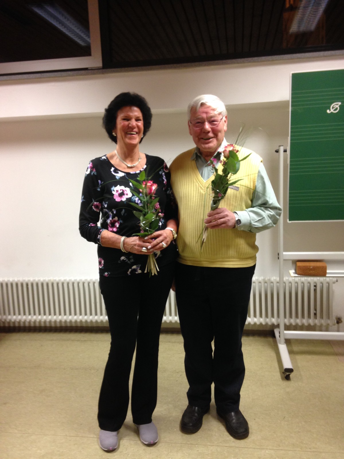Gemeinsam sind sie an diesem Tage 160 Jahre und 10 Tage alt, die langjährige Sängerin Helga Klaus und der Sänger Wolfgang Mößle. Im Anschluss an die Chorprobe sang der Chor zu diesem Anlass den Beiden ein Ständchen.